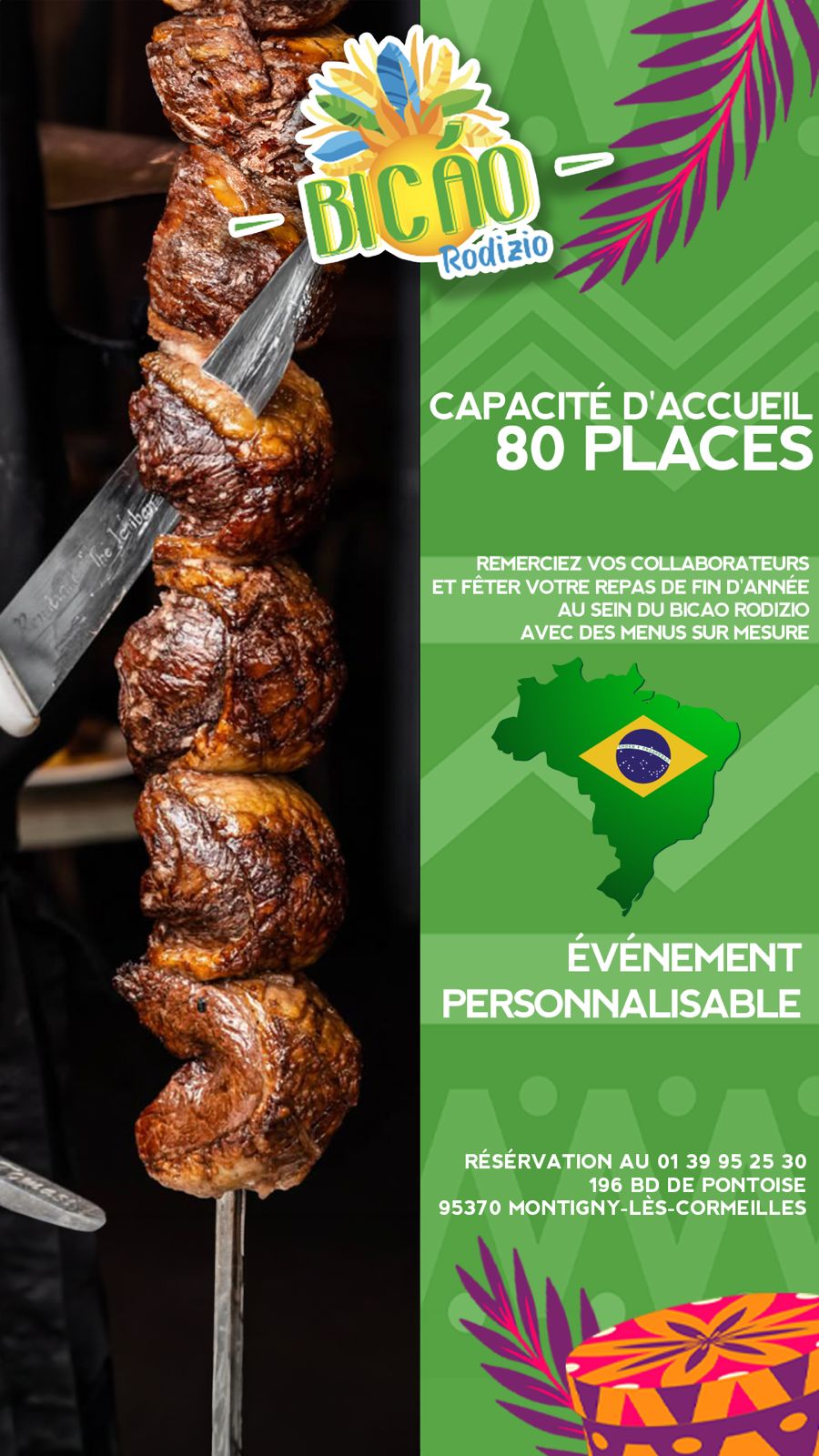 Découvrez une expérience culinaire mémorable au Bicão Rodizio, un restaurant unique situé à Montigny-lès-Cormeilles. Notre établissement met à l’honneur le rodizio et vous propose avec fierté les délices gastronomiques du Brésil et du Portugal, le tout dans une atmosphère chaleureuse et conviviale. Préparez-vous à être transporté dans un voyage gustatif exquis qui éveillera vos sens et stimulera votre appétit pour la cuisine traditionnelle brésilienne et portugaise.